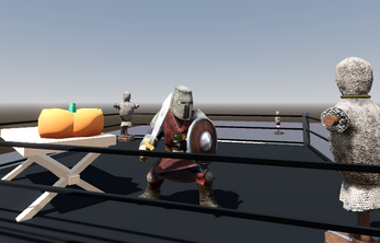 It showcases a state-driven third-person character controller in a small, physically interactive demo level. You can move, jump, roll, and attack enemies, with hitstop, camera shake, and a stagger/poise system adding combat feedback.